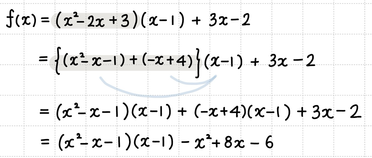 - $f(x) =$ $(x^2 - 2x + 3)$ $(x - 1) + 3x - 2$