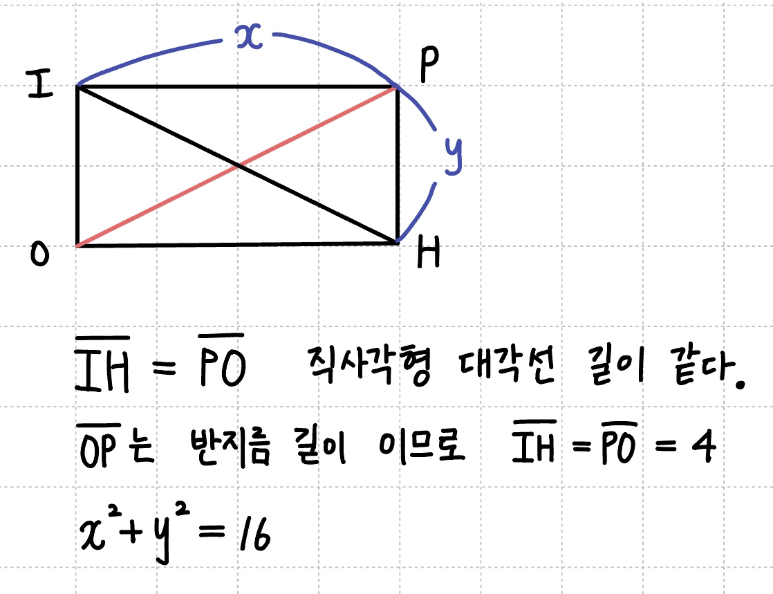- 문제에서 선분PH, 선분PI에 대해 물었으므로 미지수 $x,y$를 잡아줍니다.
