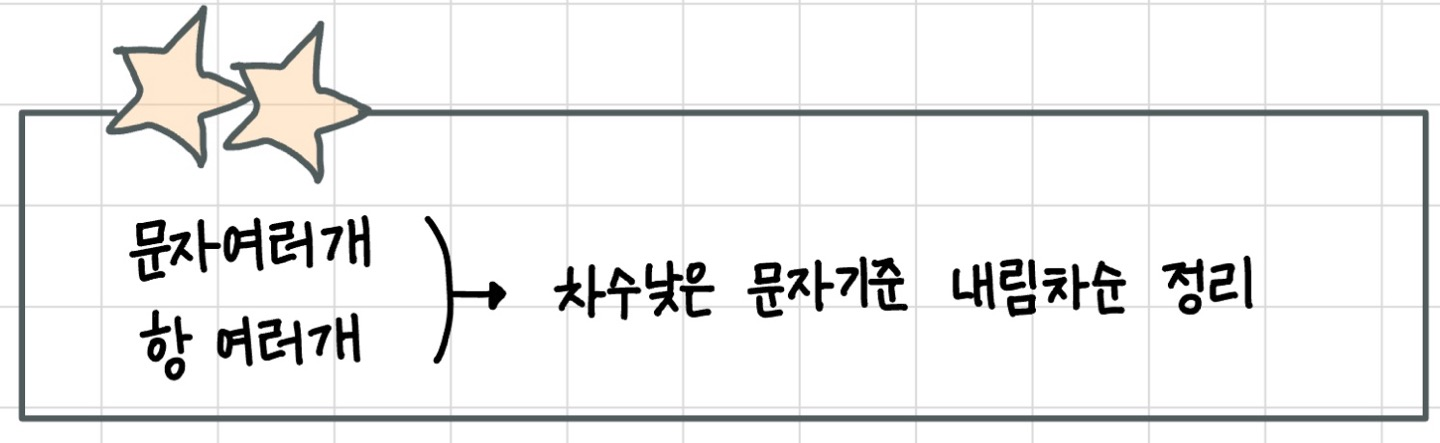 ② 차수 낮은 문자 기준으로 내림차순 정리