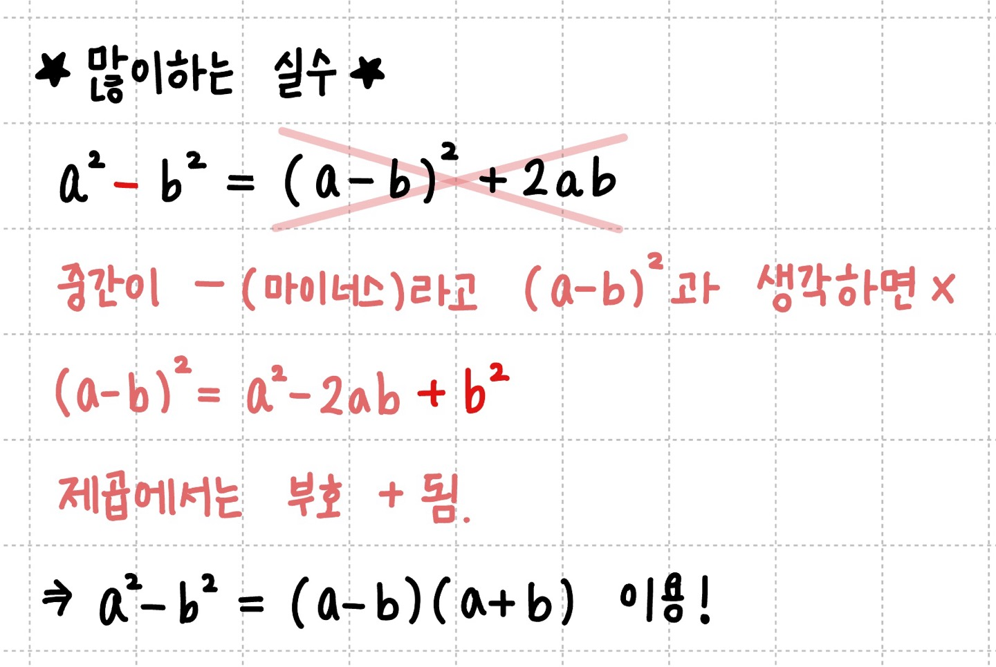 a^2-b^2=(a-b)(a+b) 인데 (a-b)^2으로 많이 생각