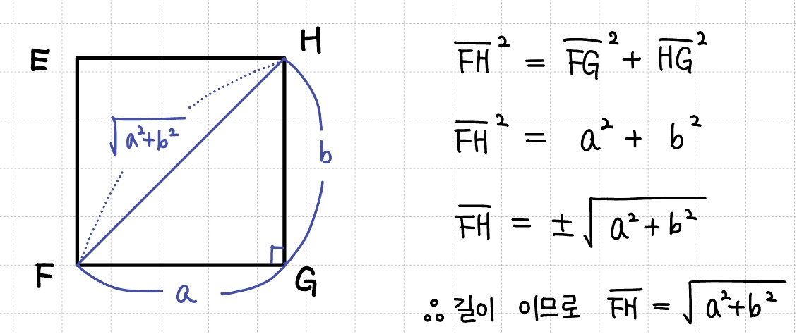 밑면 □$EFGH$를 보면, 피타고라스 정리에 의해