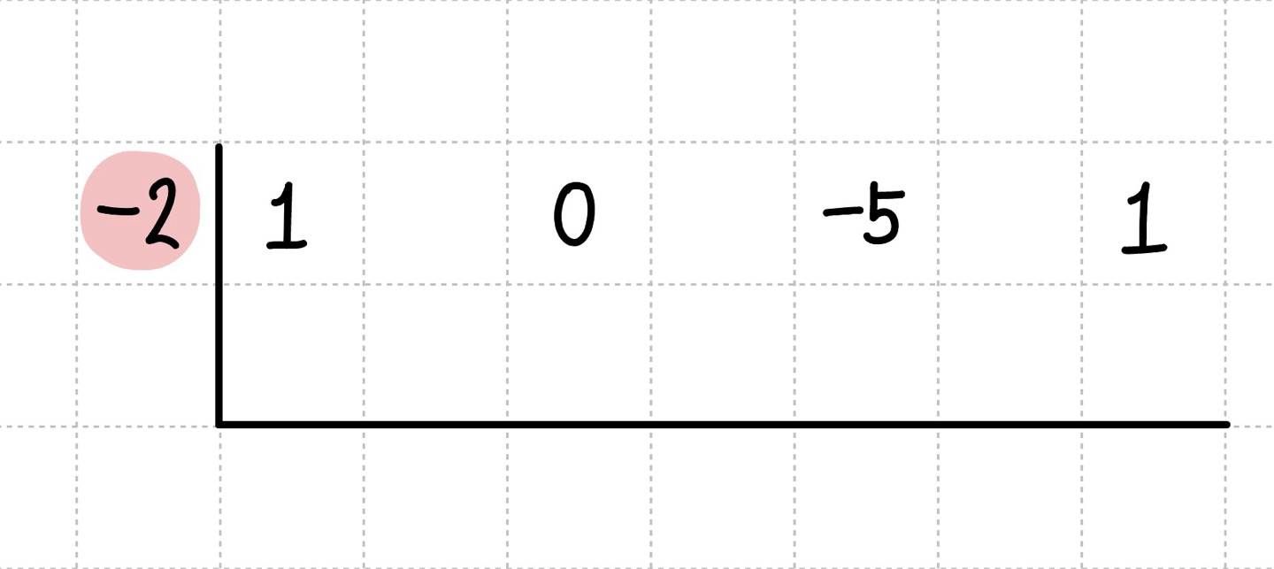 문제가 " $(x^3 - 5x + 1) \div (x + 2)$ 의 몫과 나머지를 구하시오." 였기 때문에 $ (x + 2)$가 나누는 식이라는 것을 알 수 있지만, 조립제법의 결과만 나와있더라도 어떤 식으로 나누는 지 알 수 있어야 합니다.